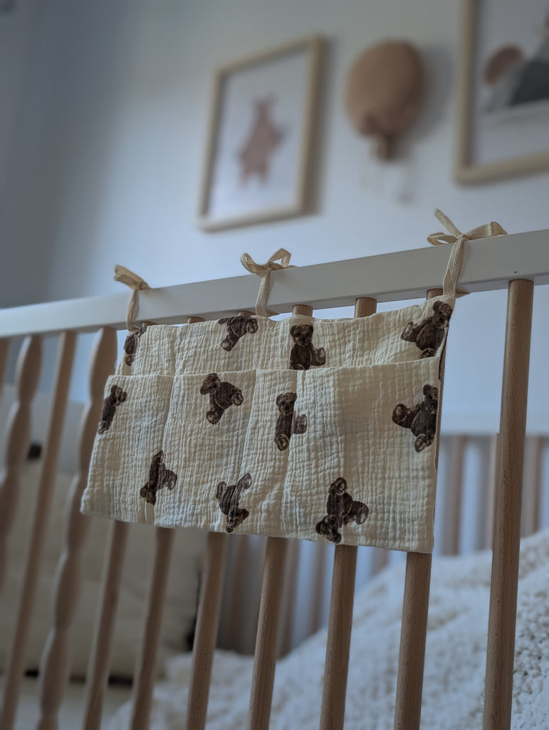 5. Hanging Cotton Storage Organizer: Add a touch of softness and organization to your baby’s nursery with our pure cotton double-layer hanging storage bag. Perfect for keeping diapers, toys, swaddles, or pacifiers close at hand.